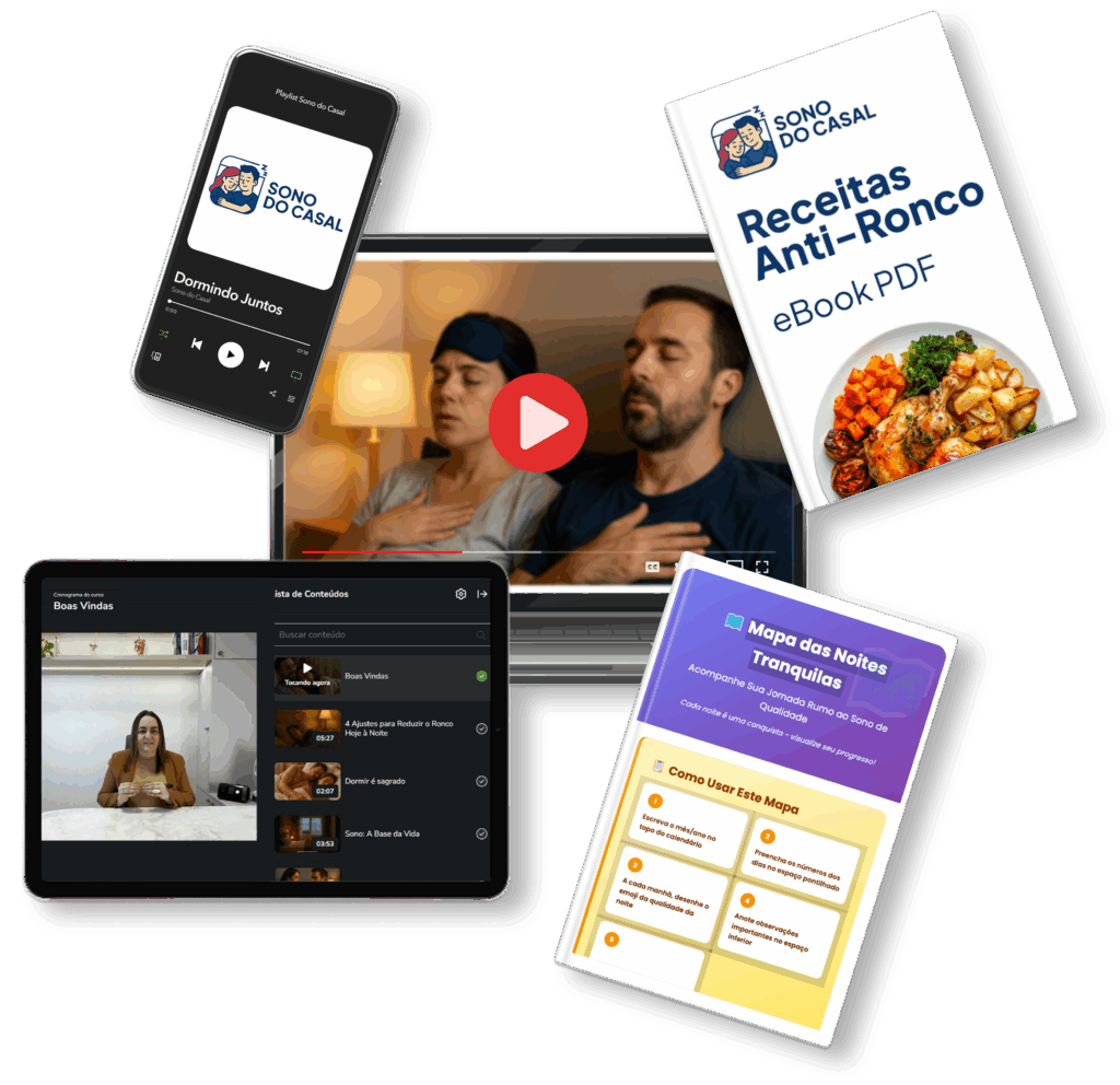 Com o Guia do Despertar do Casal: você irá aprender técnicas de respiração, exercícios para fortalecer a musculatura da garganta e língua, ajustes de posição e práticas de conexão do casal. Sem equipamentos caros, sem medicamentos. Já nas primeiras noites você respira melhor e o ronco diminui.